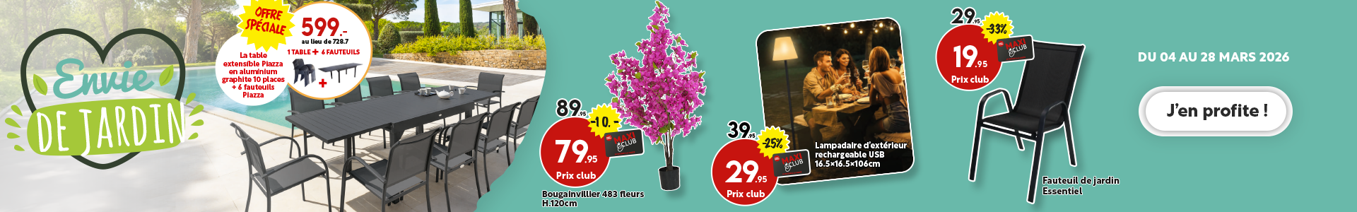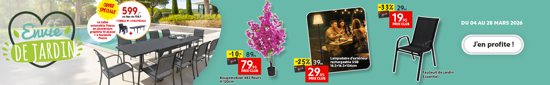 Découvrez la collection Jardin !Nos offres de meubles du mois