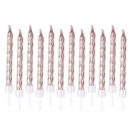 Set 12 bougies metallisees avec support h.6cm rose gold