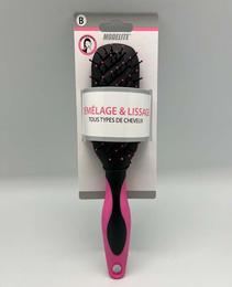 Brosse tunnel semi rectangle picots perles rose