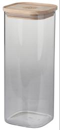 Pot verre carre empilable couvercle bois grave h.30cm