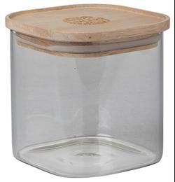 Pot verre carre empilable couvercle bois grave h.10cm
