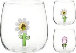 Gobelet bas verre interieur decore fleurs 500ml