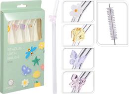 Set 4 pailles verre decoree fleur avec goupillon