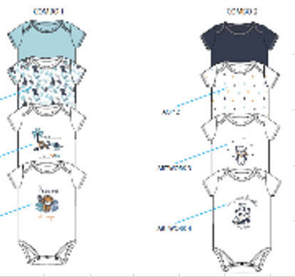 Lot 4 bodies manches courtes bleu 3 a 23 mois