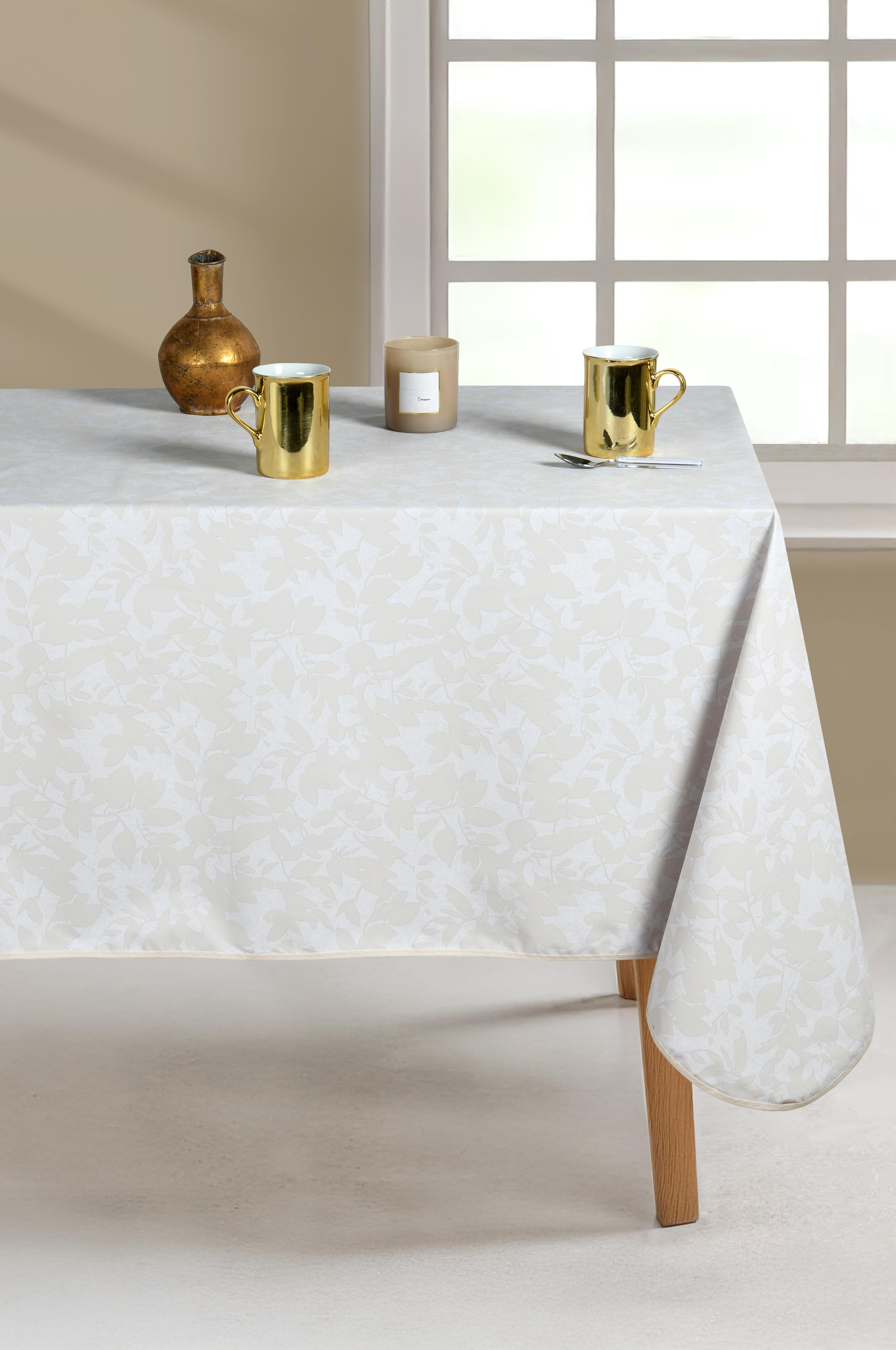 Nappe cristal 140x240cm pvc imprime feuille blanc