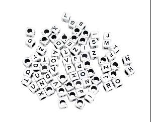 PERLES ACRYLIQUES LETTRES CARREES NOIR BLANC 0.6 CM