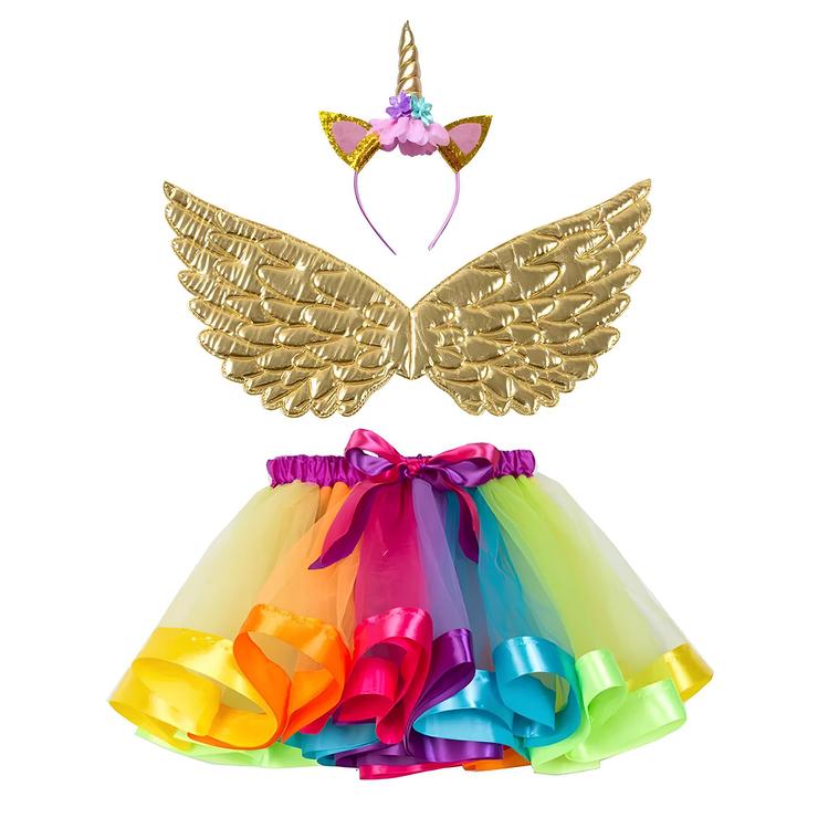 Set 3 pieces licorne or multicolore tutu aile et tiare
