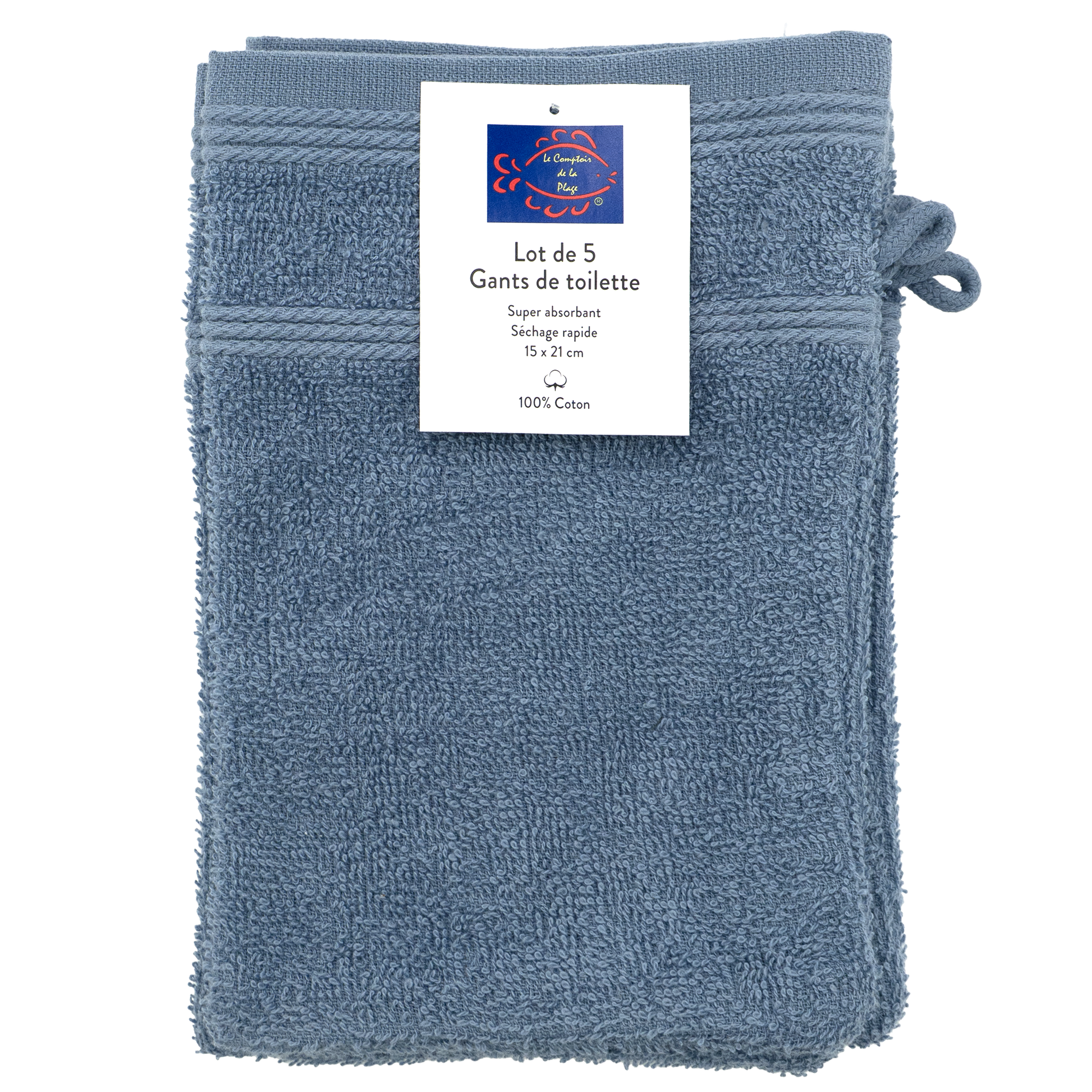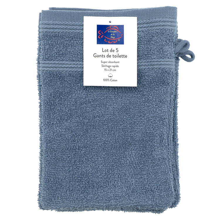 Set de 5 gants de toilette 15x21cm bleu